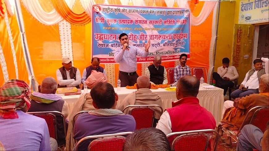 बलिया। राष्ट्रीय कृषि और ग्रामीण विकास बैंक (नाबार्ड) द्वारा प्रायोजित और माँ सुरसरी सेवा संस्थान, कथरिया द्वारा संचालित सी पी कृषक उत्पादक संगठन सहकारी समिति लिमिटेड, जानकी छपरा का उद्घाटन समारोह और जागरूकता कार्यक्रम हाल ही में बरियारपुर, सुल्तानपुर चट्टी पर आयोजित हुआ।